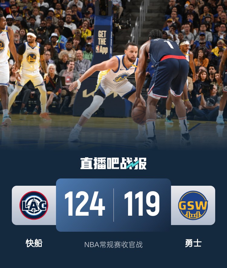 相关新闻>>>🏀哈登39+7+10 库里36+6+8失误 快船客场加时胜勇士杀进季后赛