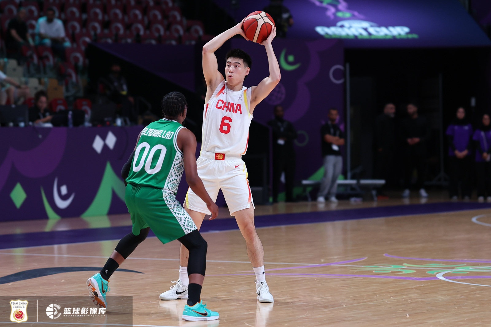 我们的破解思路也很明确,王俊杰罚球线策应破联防,找赵睿的左底角定点三分和余嘉豪的内切扣篮都恰到好处。毫无疑问,王俊杰就是我们上半场破解沙特联防的最佳答案,他不仅有策应,还有挡拆中远投以及一对一错位惩罚沙特小个的硬解能力,这个207公分、20岁的年轻人在进攻端给了我们对于现代型4号位想要的一切